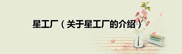 大家好,小新來為大家解答以上的問題。星工廠,關(guān)于星工廠的介紹很多人還不知道,現(xiàn)在讓我們一起來看看吧!