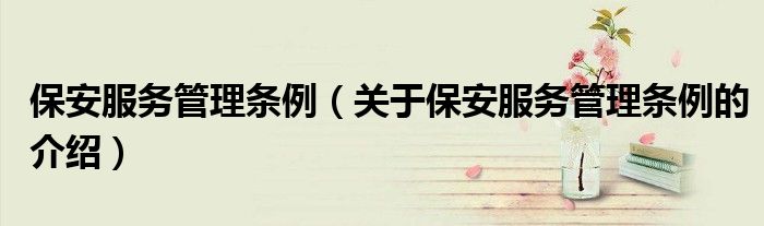 大家好,小新來(lái)為大家解答以上的問(wèn)題。保安服務(wù)管理?xiàng)l例,關(guān)于保安服務(wù)管理?xiàng)l例的介紹很多人還不知道,現(xiàn)在讓我們一起來(lái)看看吧!