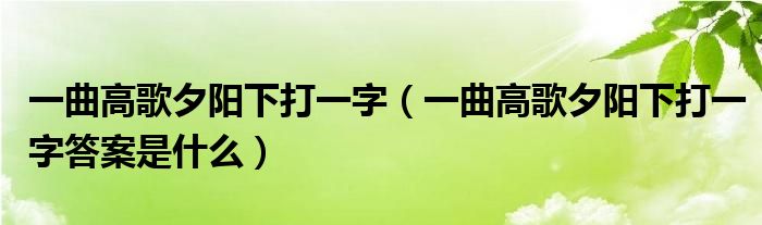 摘要大家好,伊人來(lái)為大家解答以上問(wèn)題。一曲高歌夕陽(yáng)下打一字,一曲高歌夕陽(yáng)下打一字答案是什么很多人還不知道,現(xiàn)在讓我們一起來(lái)看看吧!1、