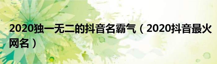 大家好,伊人來(lái)為大家解答以上問(wèn)題。2020獨(dú)一無(wú)二的抖音名霸氣,2020抖音最火網(wǎng)名很多人還不知道,現(xiàn)在讓我們一起來(lái)看看吧!