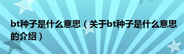 大家好,小新來為大家解答以上的問題。bt種子是什么意思,關(guān)于bt種子是什么意思的介紹很多人還不知道,現(xiàn)在讓我們一起來看看吧!