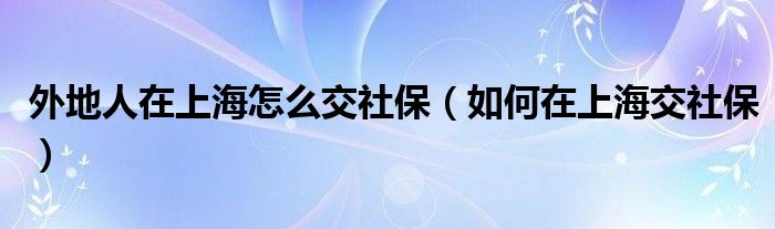 大家好,伊人來為大家解答以上問題。外地人在上海怎么交社保,如何在上海交社保很多人還不知道,現(xiàn)在讓我們一起來看看吧!