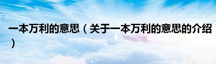 大家好,小新來為大家解答以上的問題。一本萬利的意思,關于一本萬利的意思的介紹很多人還不知道,現在讓我們一起來看看吧!