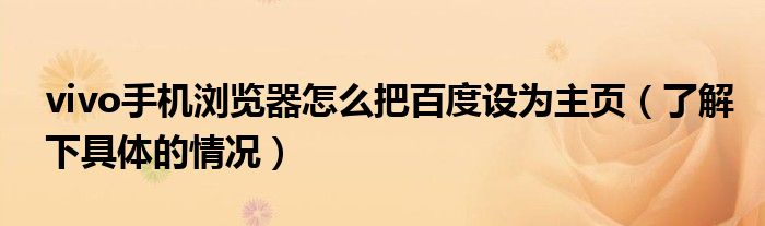 1、vivo的手機瀏覽器無法將百度設(shè)為首頁。詳情如下: