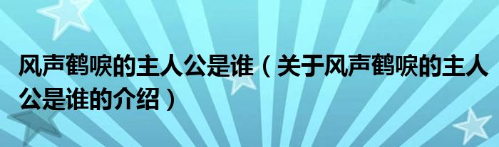 摘要大家好,小新來為大家解答以上的問題。風聲鶴唳的主人公是誰,關(guān)于風聲鶴唳的主人公是誰的介紹很多人還不知道,現(xiàn)在讓我們一起來看看吧!1
