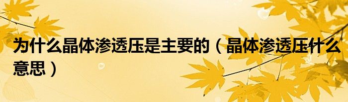 大家好,知識(shí)小編來為大家解答以上的問題。為什么晶體滲透壓是主要的,晶體滲透壓什么意思很多人還不知道,現(xiàn)在讓我們一起來看看吧!