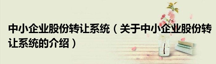 大家好,小新來為大家解答以上的問題。中小企業(yè)股份轉(zhuǎn)讓系統(tǒng),關(guān)于中小企業(yè)股份轉(zhuǎn)讓系統(tǒng)的介紹很多人還不知道,現(xiàn)在讓我們一起來看看吧!