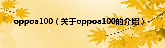 大家好,小新來為大家解答以上的問題。oppoa100,關(guān)于oppoa100的介紹很多人還不知道,現(xiàn)在讓我們一起來看看吧!