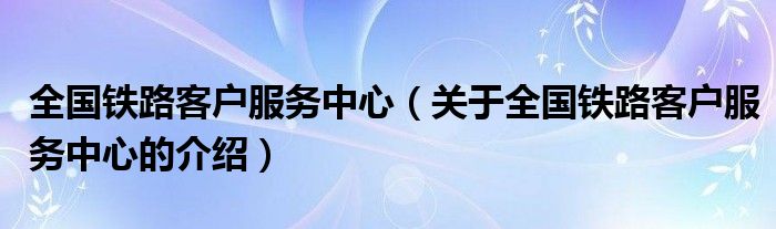 大家好,小新來為大家解答以上的問題。全國鐵路客戶服務(wù)中心,關(guān)于全國鐵路客戶服務(wù)中心的介紹很多人還不知道,現(xiàn)在讓我們一起來看看吧!