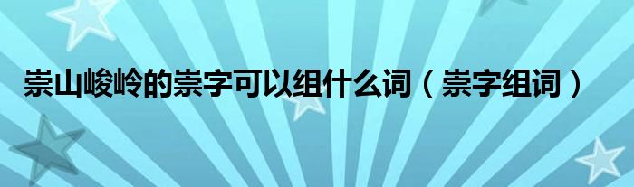 大家好,伊人來為大家解答以上問題。崇山峻嶺的崇字可以組什么詞,崇字組詞很多人還不知道,現(xiàn)在讓我們一起來看看吧!