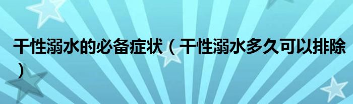 大家好,知識小編來為大家解答以上的問題。干性溺水的必備癥狀,干性溺水多久可以排除很多人還不知道,現(xiàn)在讓我們一起來看看吧!