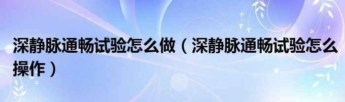 大家好,知識小編來為大家解答以上的問題。深靜脈通暢試驗怎么做,深靜脈通暢試驗怎么操作很多人還不知道,現(xiàn)在讓我們一起來看看吧!