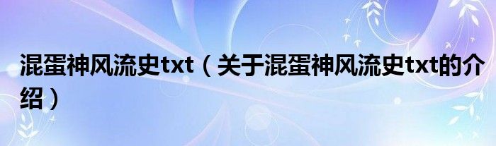 大家好,小新來為大家解答以上的問題。混蛋神風(fēng)流史txt,關(guān)于混蛋神風(fēng)流史txt的介紹很多人還不知道,現(xiàn)在讓我們一起來看看吧!