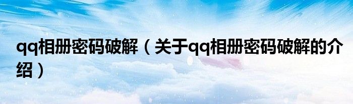 大家好,小新來為大家解答以上的問題。qq相冊密碼破解,關(guān)于qq相冊密碼破解的介紹很多人還不知道,現(xiàn)在讓我們一起來看看吧!