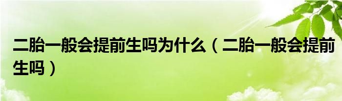 摘要大家好,知識小編來為大家解答以上的問題。二胎一般會提前生嗎為什么,二胎一般會提前生嗎很多人還不知道,現(xiàn)在讓我們一起來看看吧!在大多