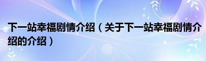 大家好,小新來為大家解答以上的問題。下一站幸福劇情介紹,關于下一站幸福劇情介紹的介紹很多人還不知道,現(xiàn)在讓我們一起來看看吧!
