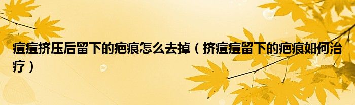 摘要大家好,知識小編來為大家解答以上的問題。痘痘擠壓后留下的疤痕怎么去掉,擠痘痘留下的疤痕如何治療很多人還不知道,現(xiàn)在讓我們一起來看看
