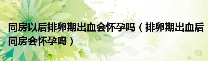 大家好,知識小編來為大家解答以上的問題。同房以后排卵期出血會懷孕嗎,排卵期出血后同房會懷孕嗎很多人還不知道,現(xiàn)在讓我們一起來看看吧!