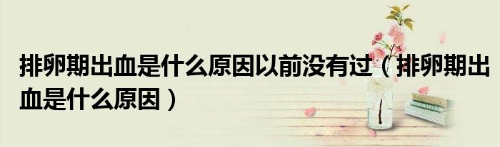 大家好,知識小編來為大家解答以上的問題。排卵期出血是什么原因以前沒有過,排卵期出血是什么原因很多人還不知道,現(xiàn)在讓我們一起來看看吧!