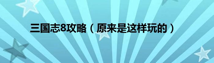 大家好,伊人來為大家解答以上問題。三國(guó)志8攻略,原來是這樣玩的很多人還不知道,現(xiàn)在讓我們一起來看看吧!