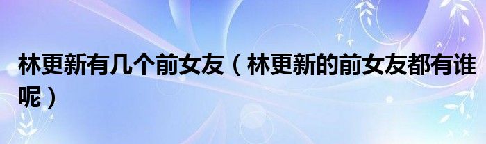 大家好,伊人來為大家解答以上問題。林更新有幾個前女友,林更新的前女友都有誰呢很多人還不知道,現(xiàn)在讓我們一起來看看吧!