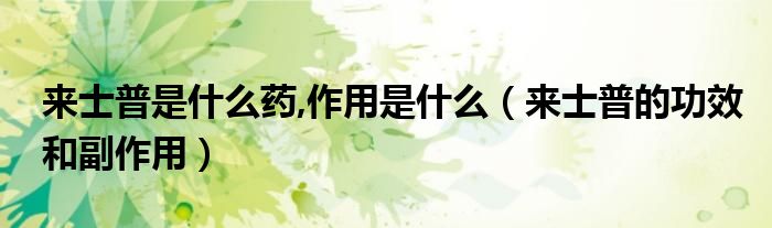 摘要大家好,知識(shí)小編來為大家解答以上的問題。來士普是什么藥,作用是什么,來士普的功效和副作用很多人還不知道,現(xiàn)在讓我們一起來看看吧!1、
