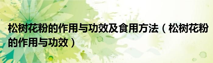 大家好,知識小編來為大家解答以上的問題。松樹花粉的作用與功效及食用方法,松樹花粉的作用與功效很多人還不知道,現(xiàn)在讓我們一起來看看吧!