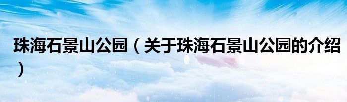 大家好,小新來為大家解答以上的問題。珠海石景山公園,關(guān)于珠海石景山公園的介紹很多人還不知道,現(xiàn)在讓我們一起來看看吧!