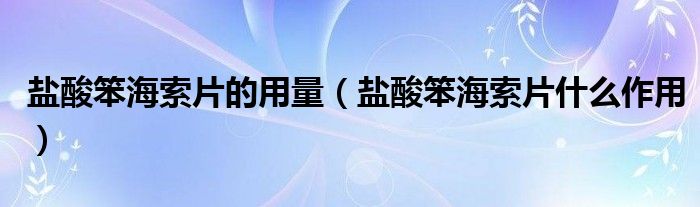 大家好,知識小編來為大家解答以上的問題。鹽酸笨海索片的用量,鹽酸笨海索片什么作用很多人還不知道,現(xiàn)在讓我們一起來看看吧!