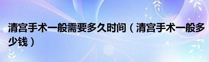 大家好,知識小編來為大家解答以上的問題。清宮手術(shù)一般需要多久時間,清宮手術(shù)一般多少錢很多人還不知道,現(xiàn)在讓我們一起來看看吧!