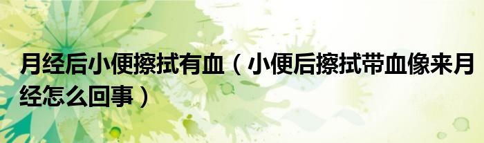 大家好,知識(shí)小編來(lái)為大家解答以上的問(wèn)題。月經(jīng)后小便擦拭有血,小便后擦拭帶血像來(lái)月經(jīng)怎么回事很多人還不知道,現(xiàn)在讓我們一起來(lái)看看吧!