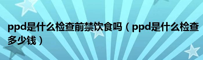 大家好,知識(shí)小編來為大家解答以上的問題。ppd是什么檢查前禁飲食嗎,ppd是什么檢查多少錢很多人還不知道,現(xiàn)在讓我們一起來看看吧!