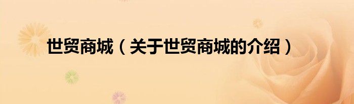 大家好,小新來為大家解答以上的問題。世貿(mào)商城,關(guān)于世貿(mào)商城的介紹很多人還不知道,現(xiàn)在讓我們一起來看看吧!