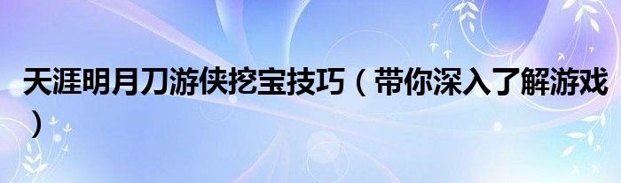 大家好,伊人來為大家解答以上問題。天涯明月刀游俠挖寶技巧,帶你深入了解游戲很多人還不知道,現(xiàn)在讓我們一起來看看吧!