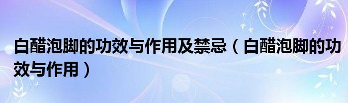 摘要大家好,知識(shí)小編來(lái)為大家解答以上的問(wèn)題。白醋泡腳的功效與作用及禁忌,白醋泡腳的功效與作用很多人還不知道,現(xiàn)在讓我們一起來(lái)看看吧!白
