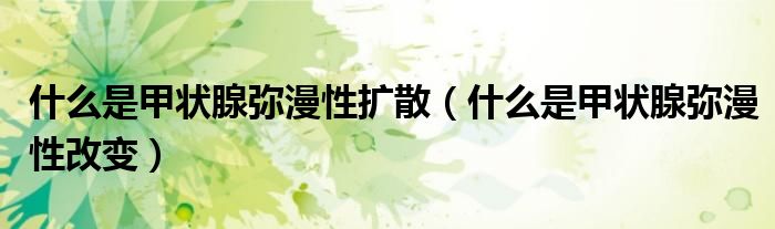 大家好,知識小編來為大家解答以上的問題。什么是甲狀腺彌漫性擴散,什么是甲狀腺彌漫性改變很多人還不知道,現(xiàn)在讓我們一起來看看吧!