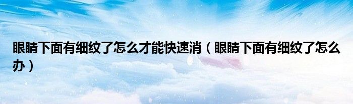 大家好,知識小編來為大家解答以上的問題。眼睛下面有細(xì)紋了怎么才能快速消,眼睛下面有細(xì)紋了怎么辦很多人還不知道,現(xiàn)在讓我們一起來看看吧!