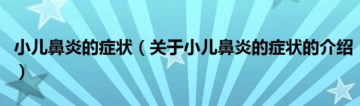 大家好,小新來為大家解答以上的問題。小兒鼻炎的癥狀,關(guān)于小兒鼻炎的癥狀的介紹很多人還不知道,現(xiàn)在讓我們一起來看看吧!
