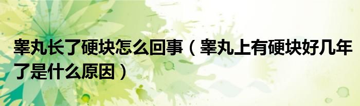 摘要大家好,知識(shí)小編來為大家解答以上的問題。睪丸長(zhǎng)了硬塊怎么回事,睪丸上有硬塊好幾年了是什么原因很多人還不知道,現(xiàn)在讓我們一起來看看吧