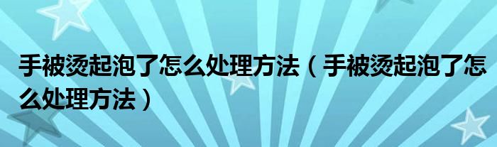 摘要大家好,知識(shí)小編來(lái)為大家解答以上的問題。手被燙起泡了怎么處理方法,手被燙起泡了怎么處理方法很多人還不知道,現(xiàn)在讓我們一起來(lái)看看吧!