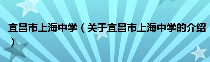 大家好,小新來(lái)為大家解答以上的問(wèn)題。宜昌市上海中學(xué),關(guān)于宜昌市上海中學(xué)的介紹很多人還不知道,現(xiàn)在讓我們一起來(lái)看看吧!