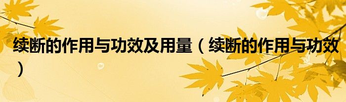 大家好,知識小編來為大家解答以上的問題。續(xù)斷的作用與功效及用量,續(xù)斷的作用與功效很多人還不知道,現(xiàn)在讓我們一起來看看吧!