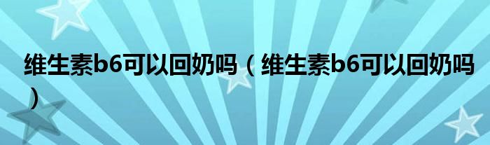 大家好,知識(shí)小編來為大家解答以上的問題。維生素b6可以回奶嗎,維生素b6可以回奶嗎很多人還不知道,現(xiàn)在讓我們一起來看看吧!