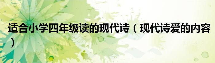 大家好,伊人來為大家解答以上問題。適合小學(xué)四年級讀的現(xiàn)代詩,現(xiàn)代詩愛的內(nèi)容很多人還不知道,現(xiàn)在讓我們一起來看看吧!