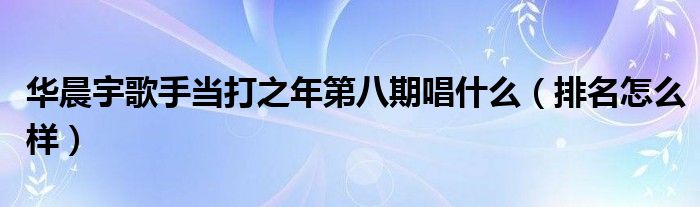 大家好,伊人來為大家解答以上問題。華晨宇歌手當打之年第八期唱什么,排名怎么樣很多人還不知道,現(xiàn)在讓我們一起來看看吧!