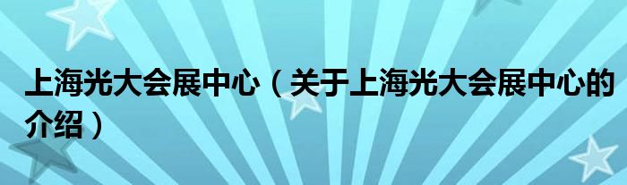 大家好,小新來為大家解答以上的問題。上海光大會展中心,關于上海光大會展中心的介紹很多人還不知道,現(xiàn)在讓我們一起來看看吧!