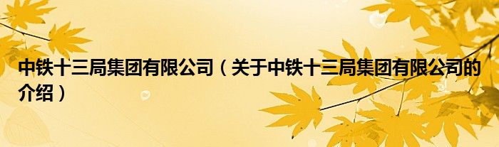 摘要大家好,小新來為大家解答以上的問題。中鐵十三局集團有限公司,關(guān)于中鐵十三局集團有限公司的介紹很多人還不知道,現(xiàn)在讓我們一起來看看吧