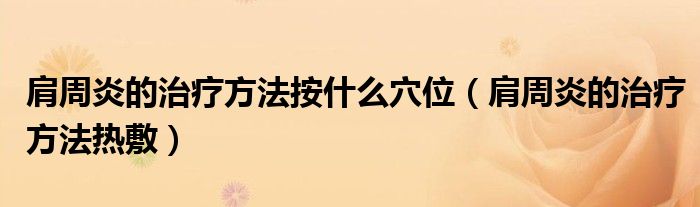 摘要大家好,知識小編來為大家解答以上的問題。肩周炎的治療方法按什么穴位,肩周炎的治療方法熱敷很多人還不知道,現(xiàn)在讓我們一起來看看吧!肩