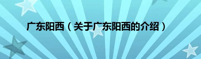 大家好,小新來為大家解答以上的問題。廣東陽西,關于廣東陽西的介紹很多人還不知道,現(xiàn)在讓我們一起來看看吧!