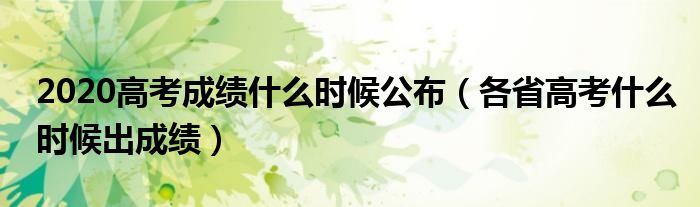 大家好,伊人來為大家解答以上問題。2020高考成績什么時(shí)候公布,各省高考什么時(shí)候出成績很多人還不知道,現(xiàn)在讓我們一起來看看吧!